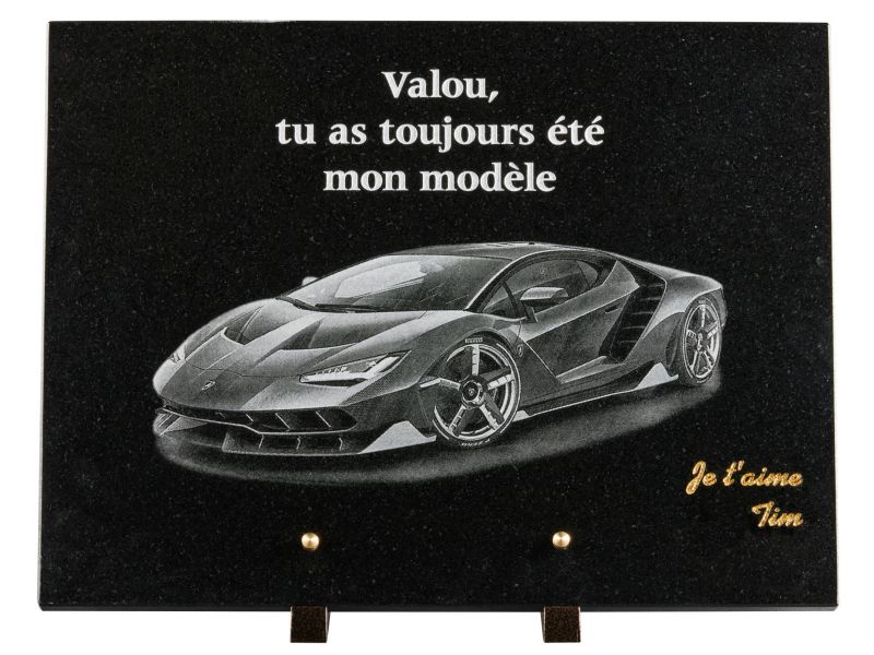 Chronoplaques reproduit directement vos photos sur votre plaque. Les photogravures se font uniquement sur le granit noir fin et à la peinture blanche. Possibilité de photo-montage. La photogravure fonctionne très bien pour les portraits mais également pour des véhicules, des paysages, des animaux etc...